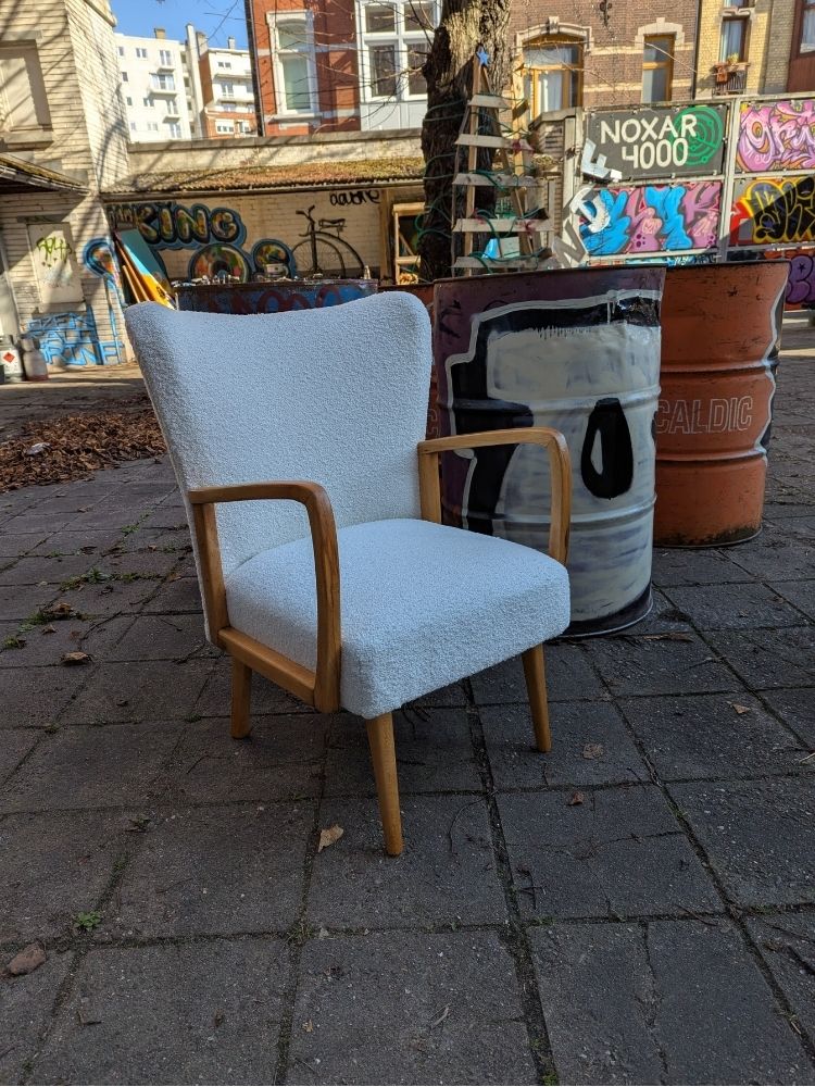 Deux fauteuils restaurés pour créer un petit coin cosy à l’entrée du bureau